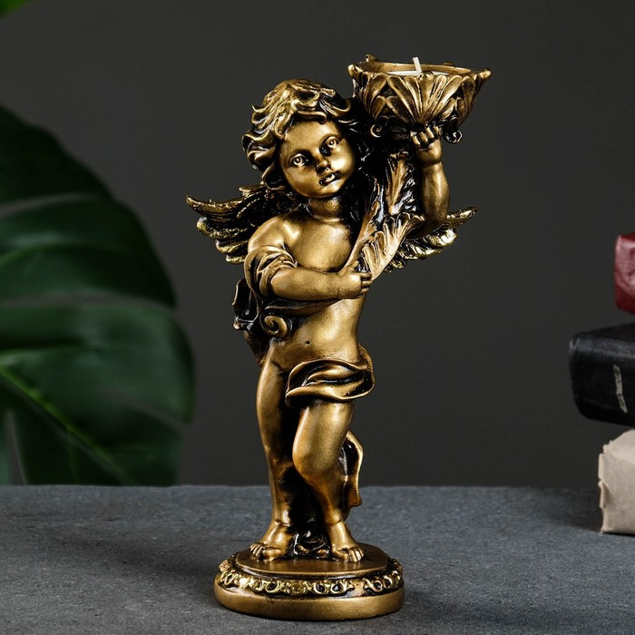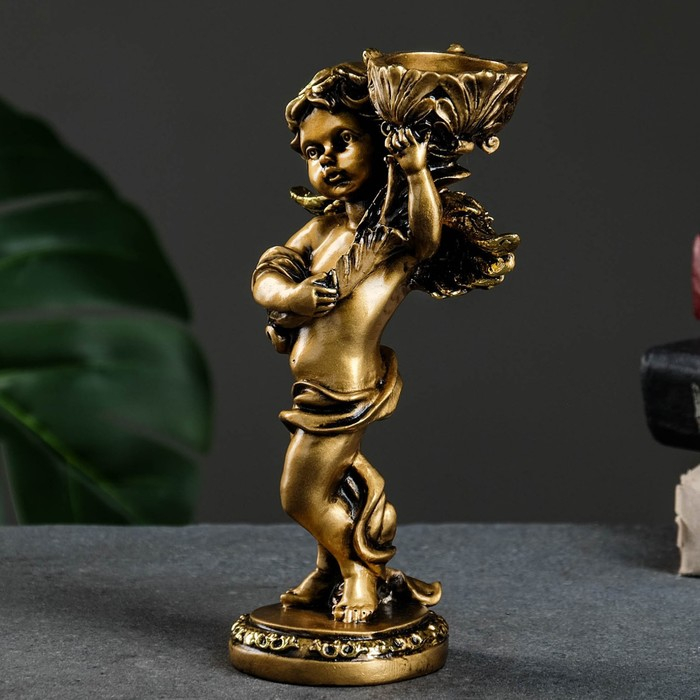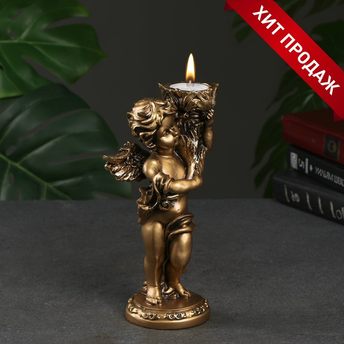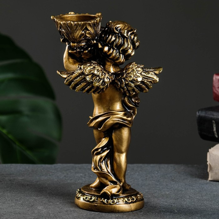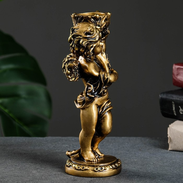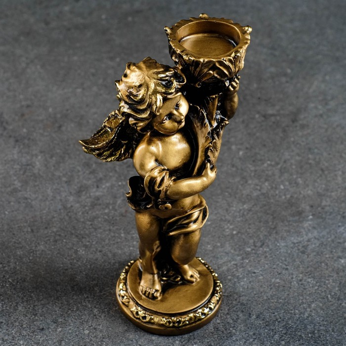Подсвечник "Ангелочек" в левой руке, золото, 14х8х22 см, для свечи d=4 см
