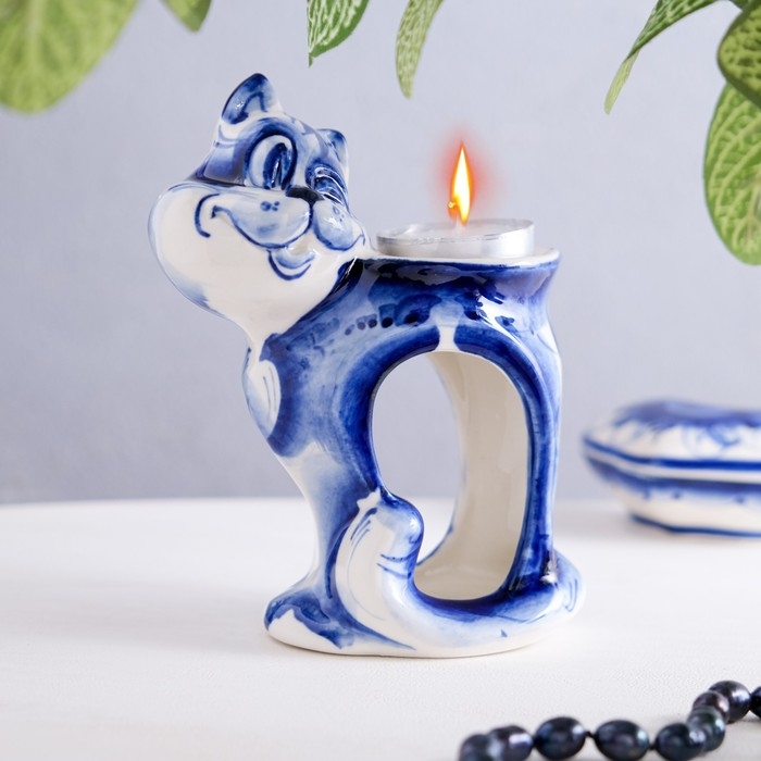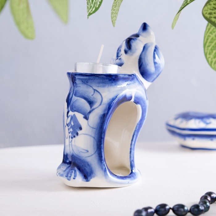 Подсвечник-аромалампа «Хитрый кот», микс, гжель