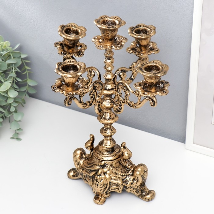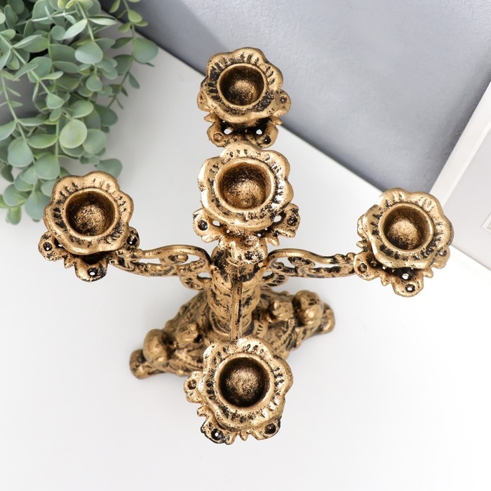 Подсвечник чугун на 5 свечей "Феодал" под бронзу 32,5х23х23 см