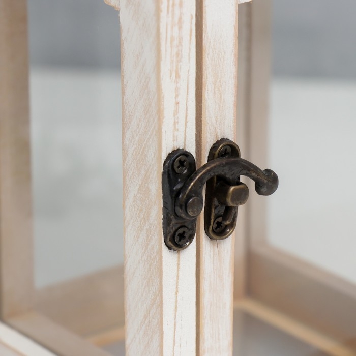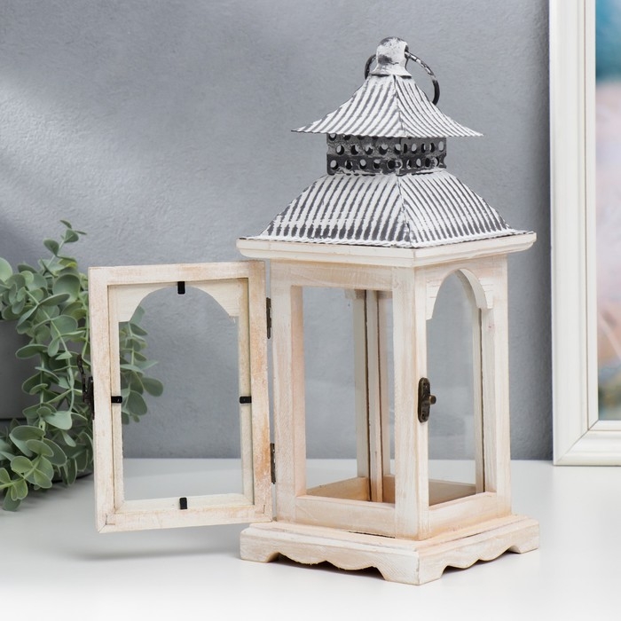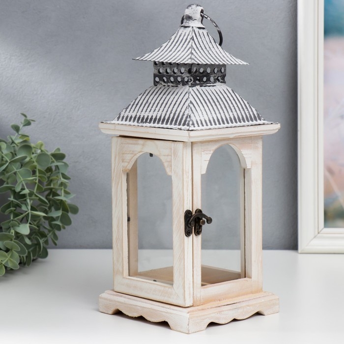 Подсвечник дерево "Фонарь с полосатой крышей" состаренный набор 2 шт 31х14х14 52х20х20 см