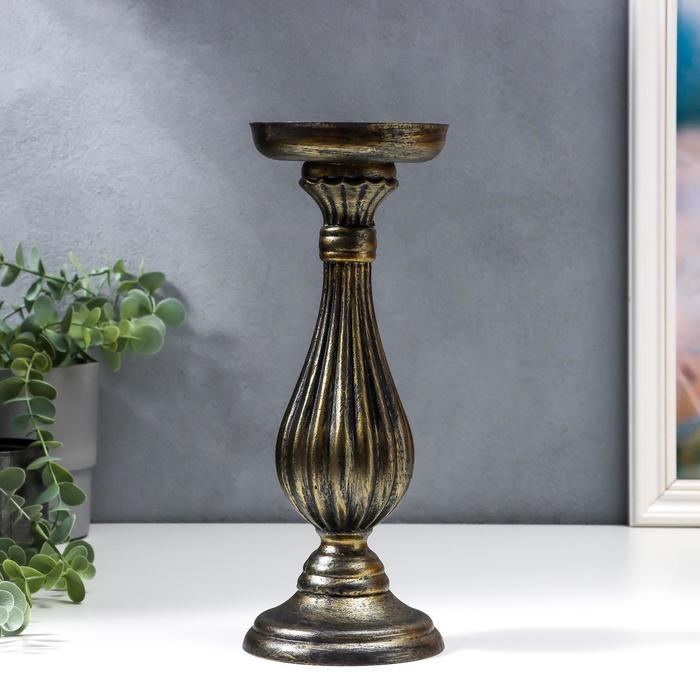 Подсвечник дерево на 1 свечу "Фердинанд" чёрный с золотой патиной 28х10,5х10,5 см