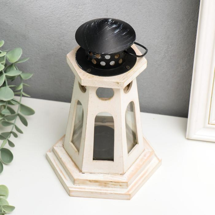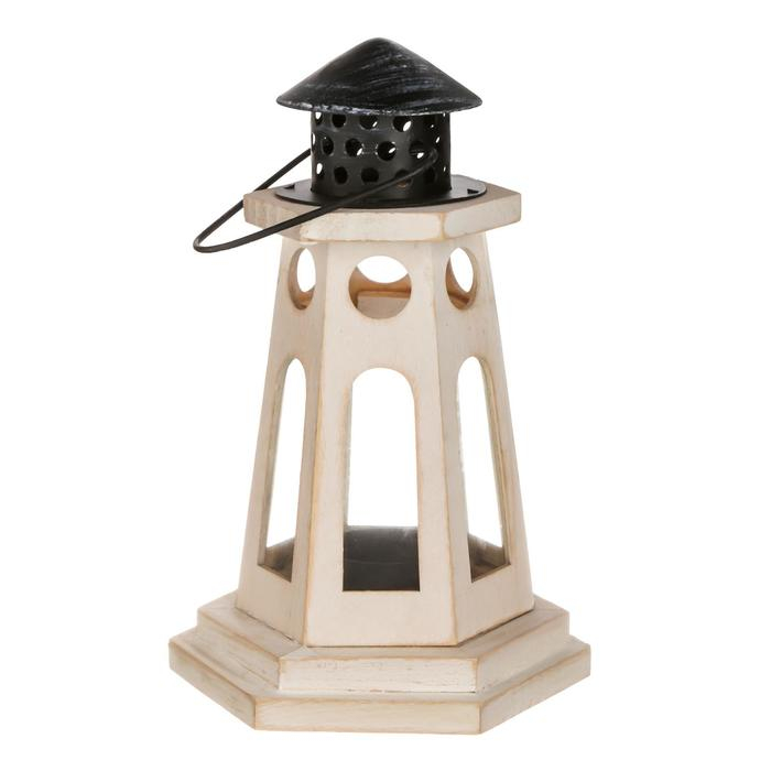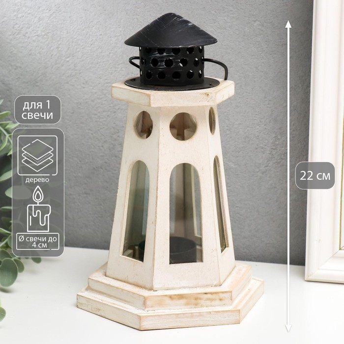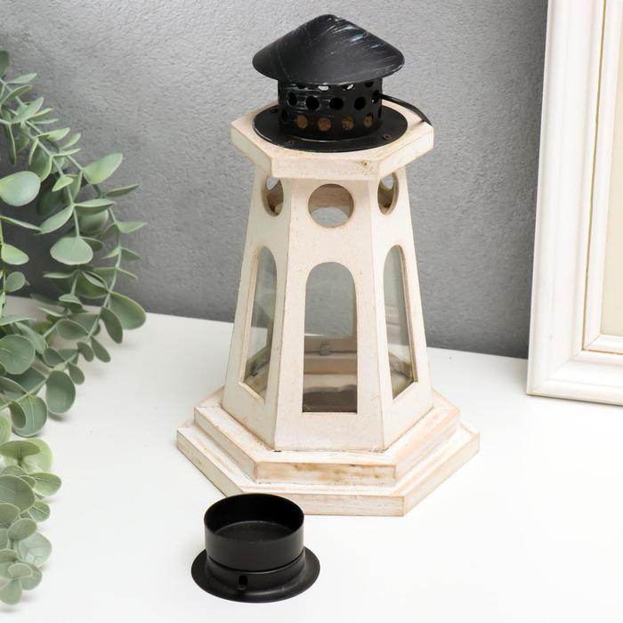 Подсвечник дерево на 1 свечу "Фонарь-маяк" белый 22х13,8х12,8 см