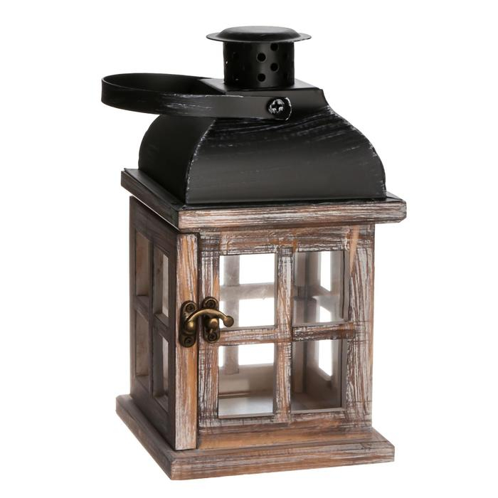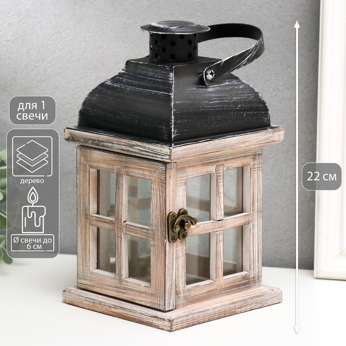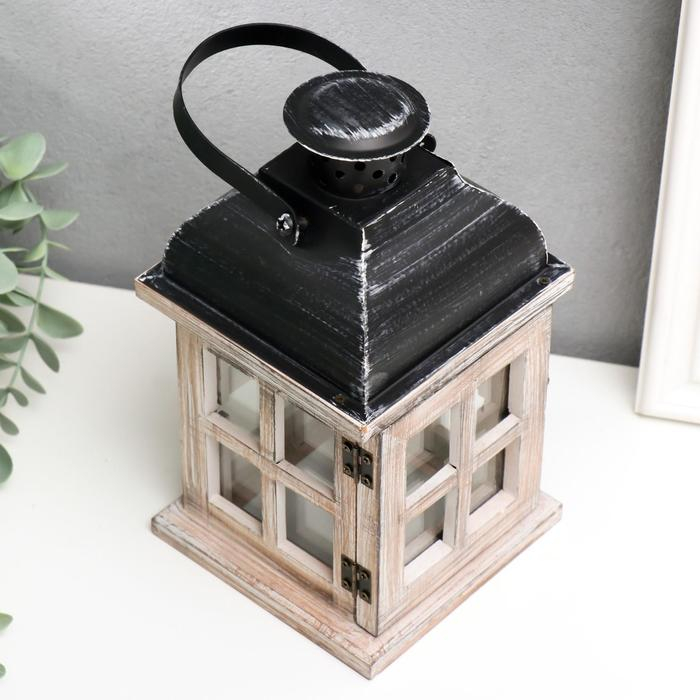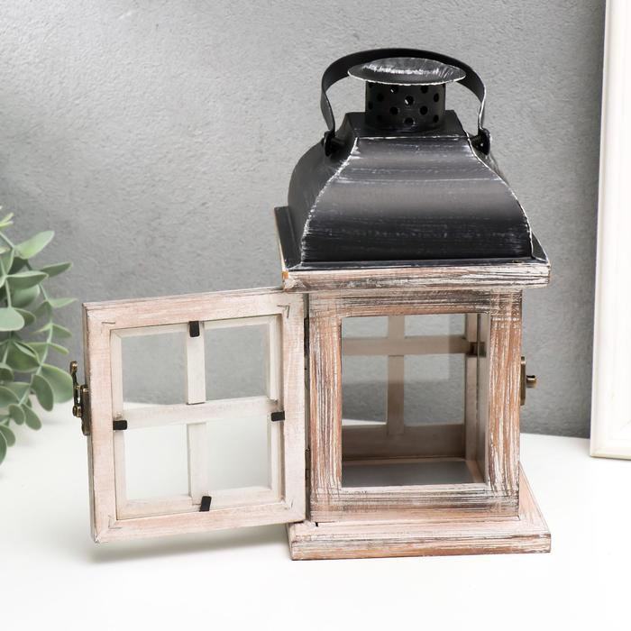 Подсвечник дерево на 1 свечу "Фонарь - окошки" состаренный белый 22х11,5х11,5 см