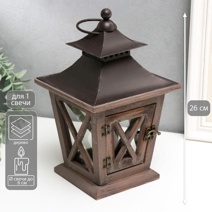 Подсвечник дерево на 1 свечу "Фонарь" тёмное дерево 26х15,4х15,4 см