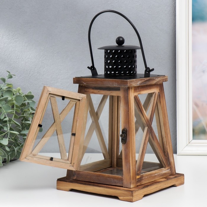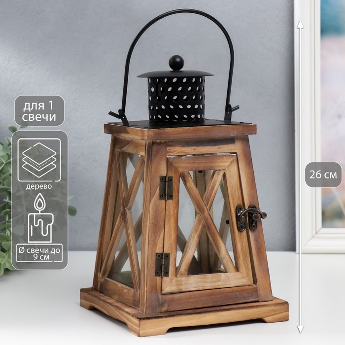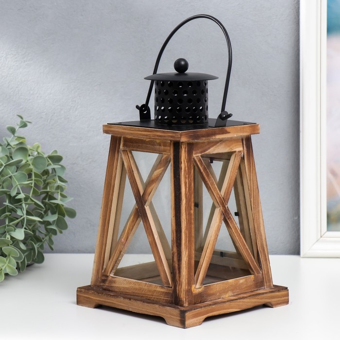 Подсвечник дерево на 1 свечу "Фонарь - трапеция" состаренный 26х16х16 см