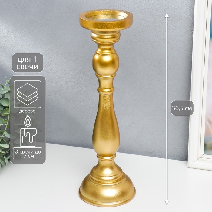 Подсвечник дерево на 1 свечу "Оскар" золотой 36,5х10х10 см