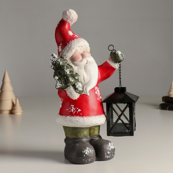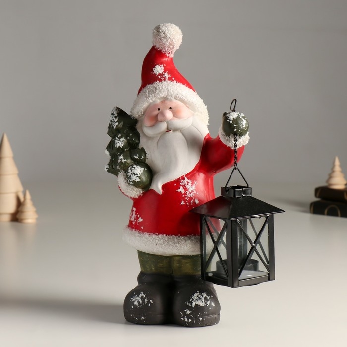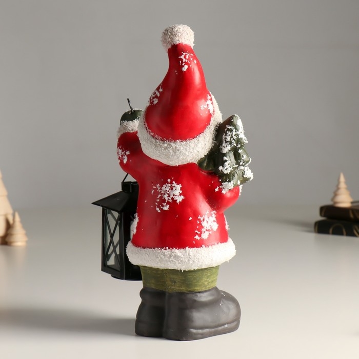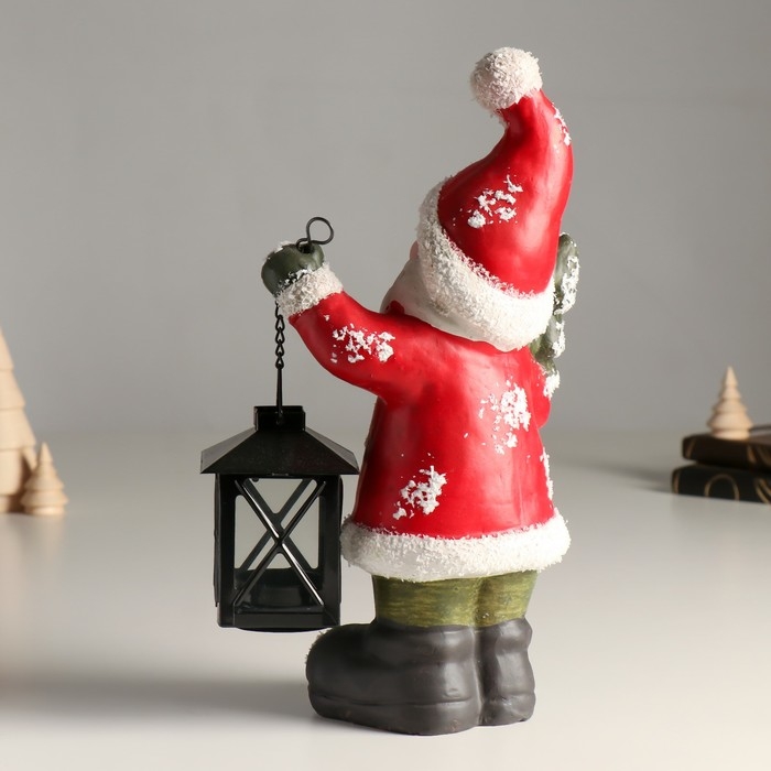 Подсвечник керамика "Дед Мороз в красной шубке, с фонарём и ёлочкой" 15,5х9х30 см
