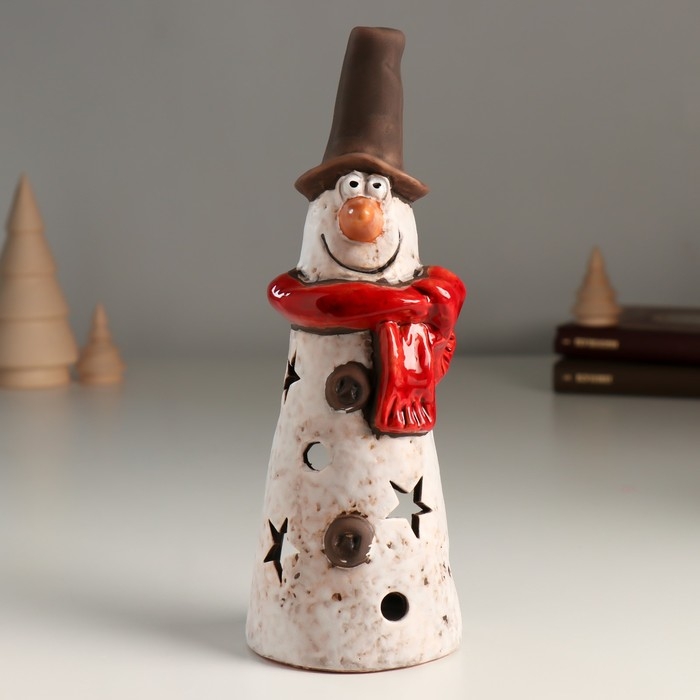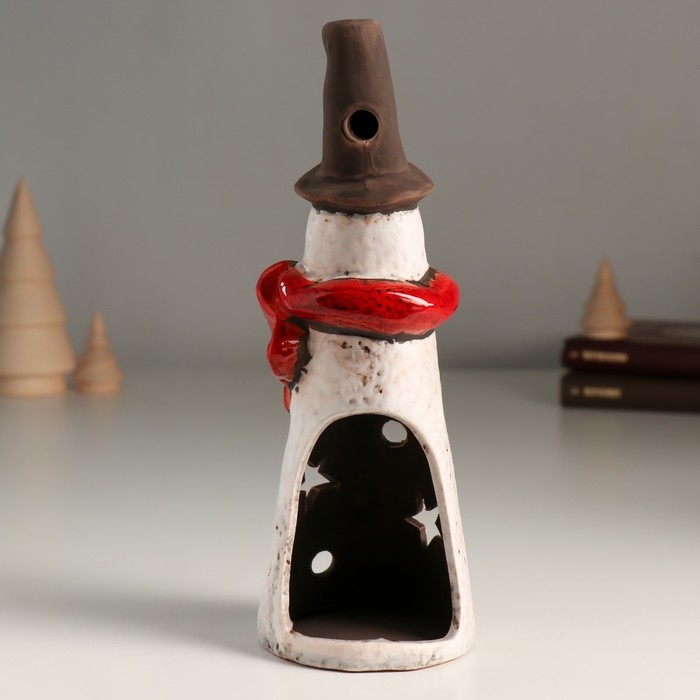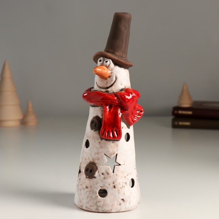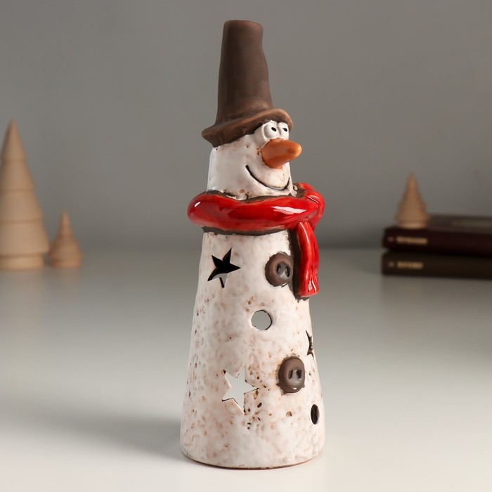 Подсвечник керамика на 1 свечу "Длинный снеговичок со звёздочками" 7х7,3х20,6 см