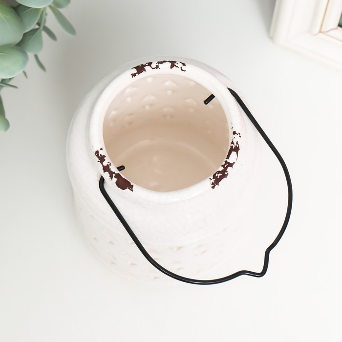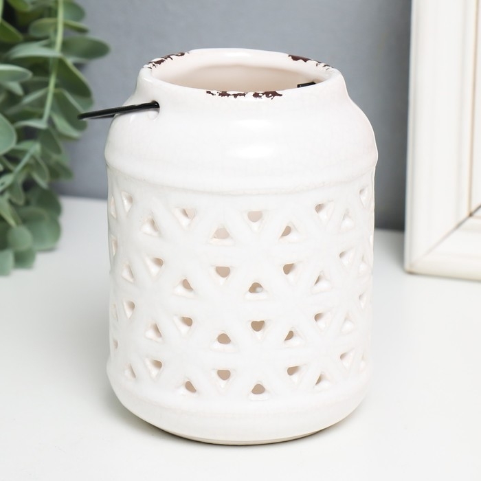 Подсвечник керамика на 1 свечу "Фонарь. Ромбы" белый 9х9х12 см