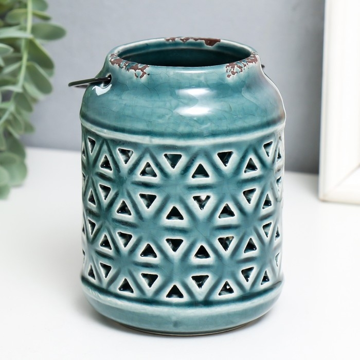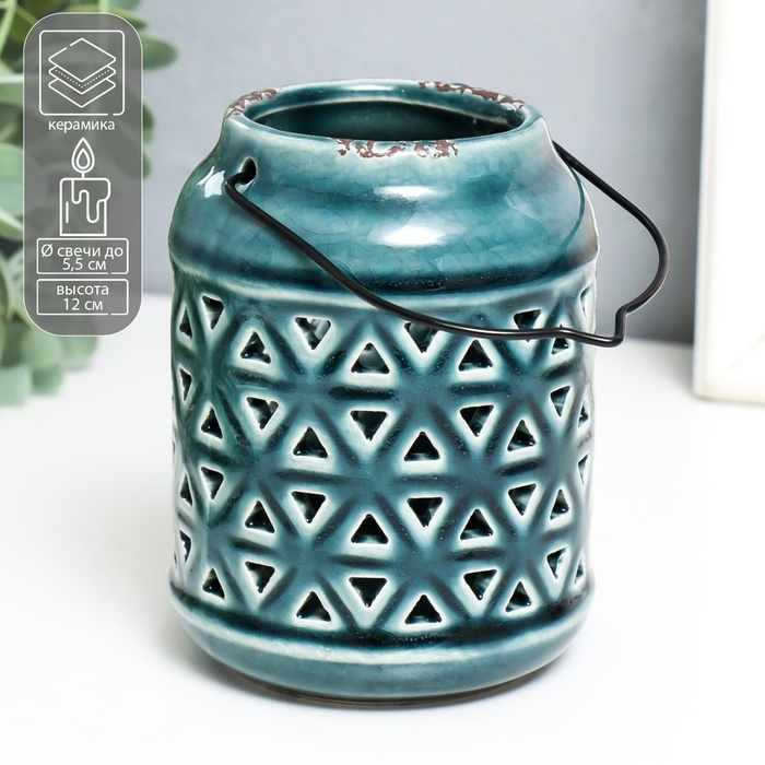 Подсвечник керамика на 1 свечу "Фонарь. Ромбы" зелёный 9х9х12 см