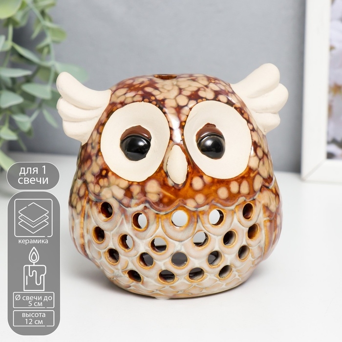 Подсвечник керамика на 1 свечу "Маленький филин" 12х10х9 см