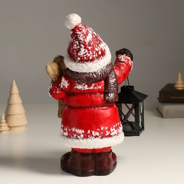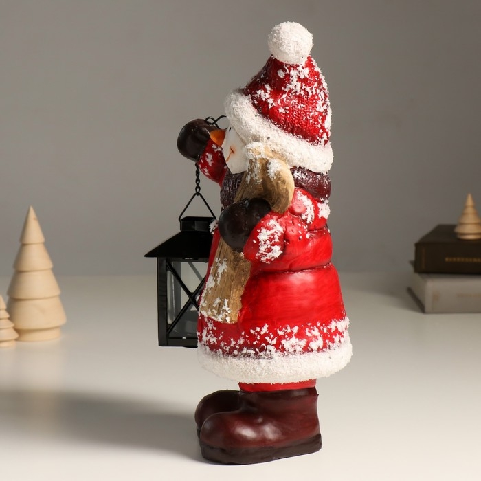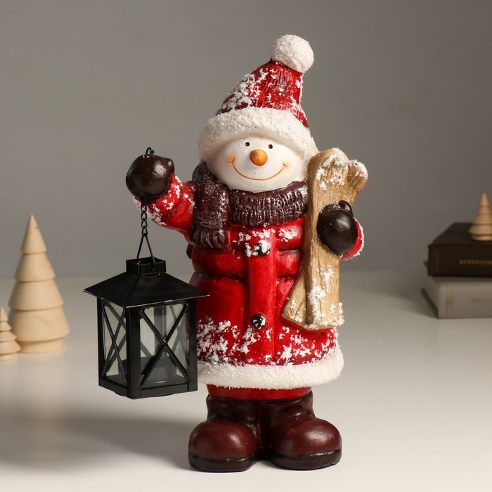 Подсвечник керамика "Снеговик в красной шубке, с фонарём и лыжами" 21,5х12х31 см