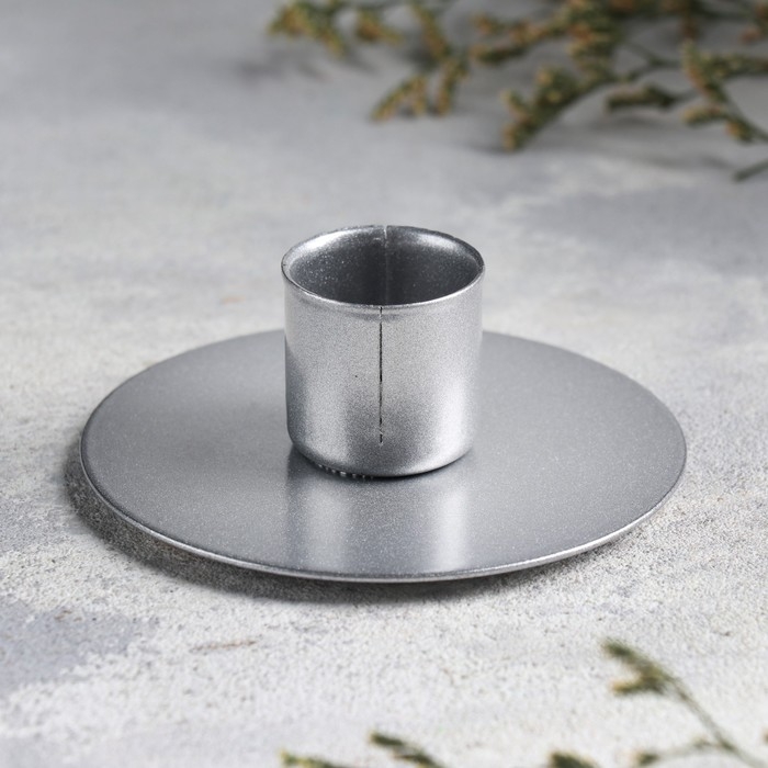 Подсвечник "Круг" металл на одну свечу, 7х3 см, серебро