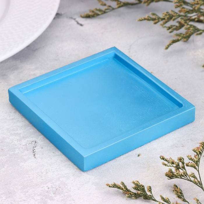 Подсвечник квадратный из гипса,10х1,5см,голубой