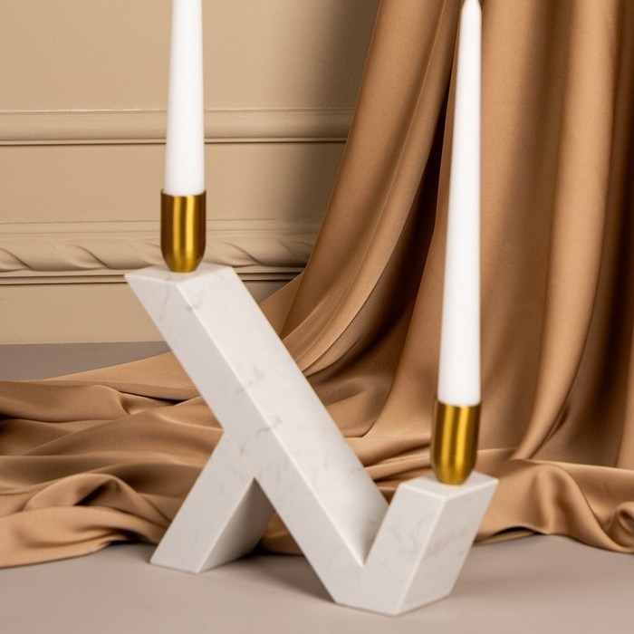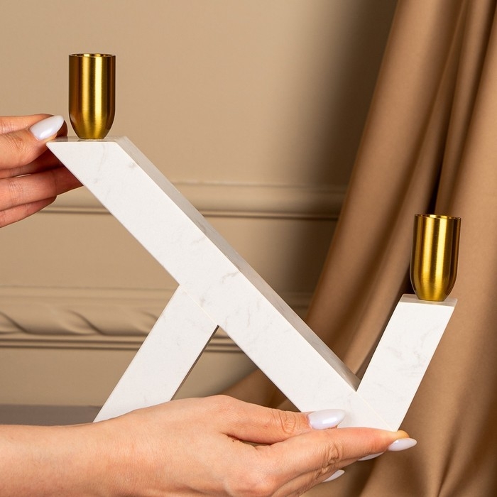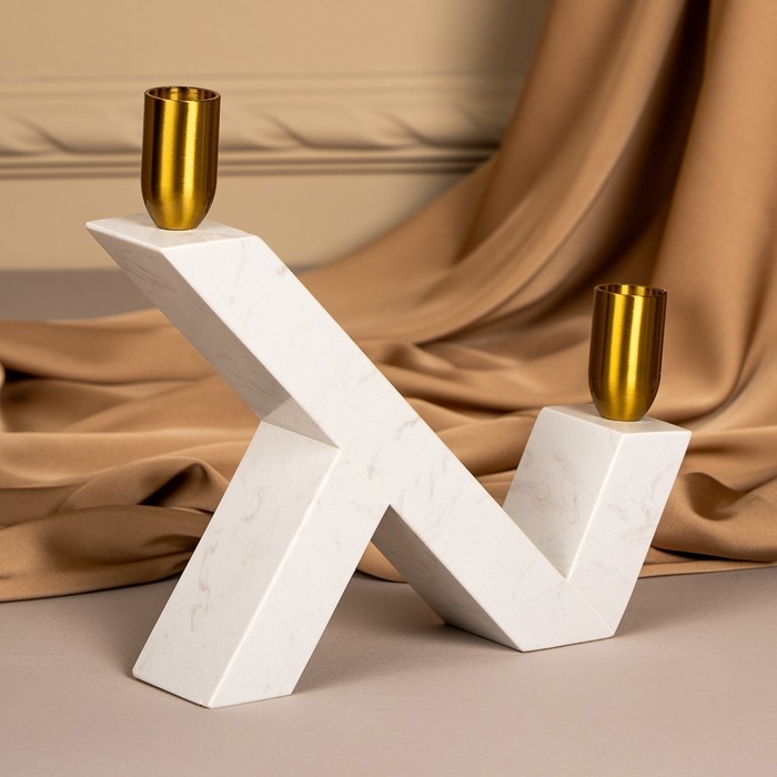 Подсвечник латунь, мрамор «Грани» 22 х 20 х 5 см