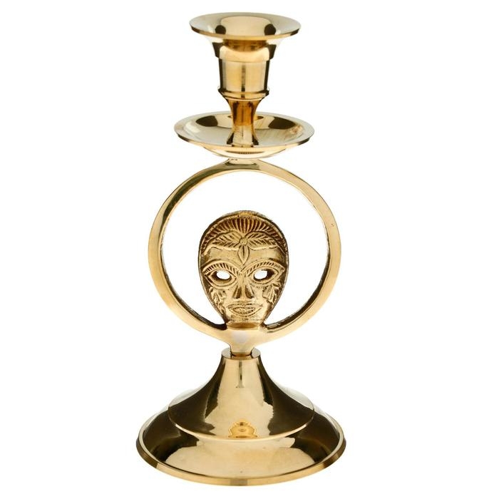 Подсвечник "Маска" латунь 8,5х8,5х17,5 см