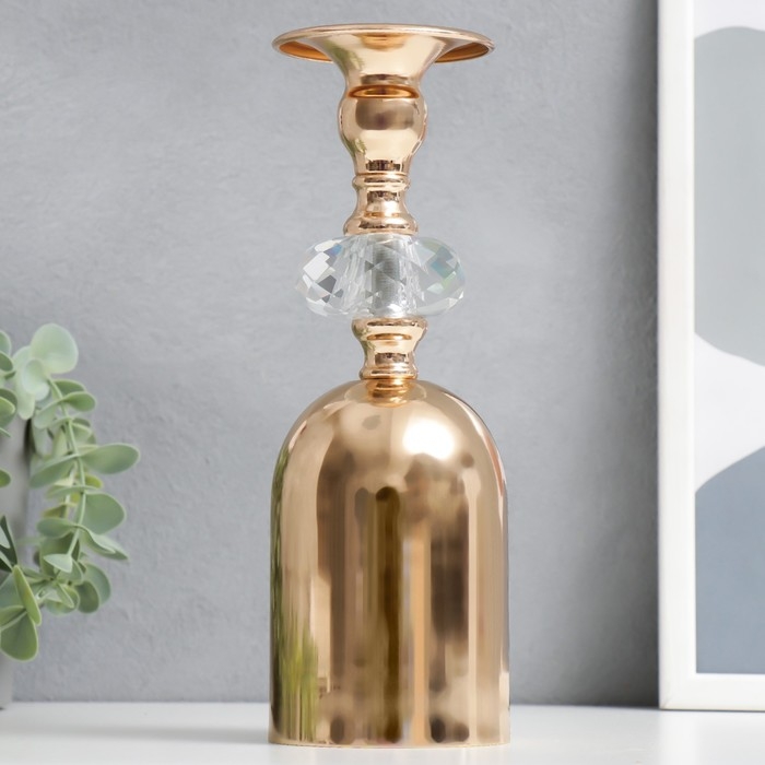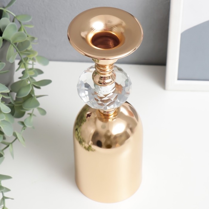 Подсвечник металл, акрил на 1 свечу "Перевёрнутый бокал с кристаллом" золото 24х7,5х7,5 см