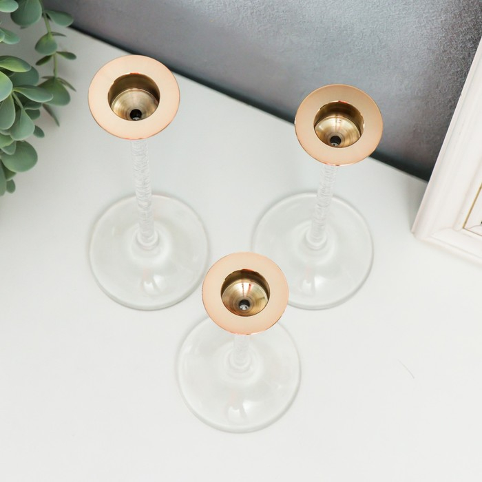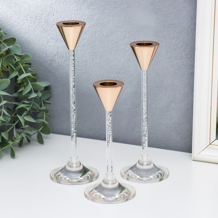 Подсвечник металл, акрил "Ундина" набор 3 шт 7х7х15, 7х7х18, 7х7х21,5 см