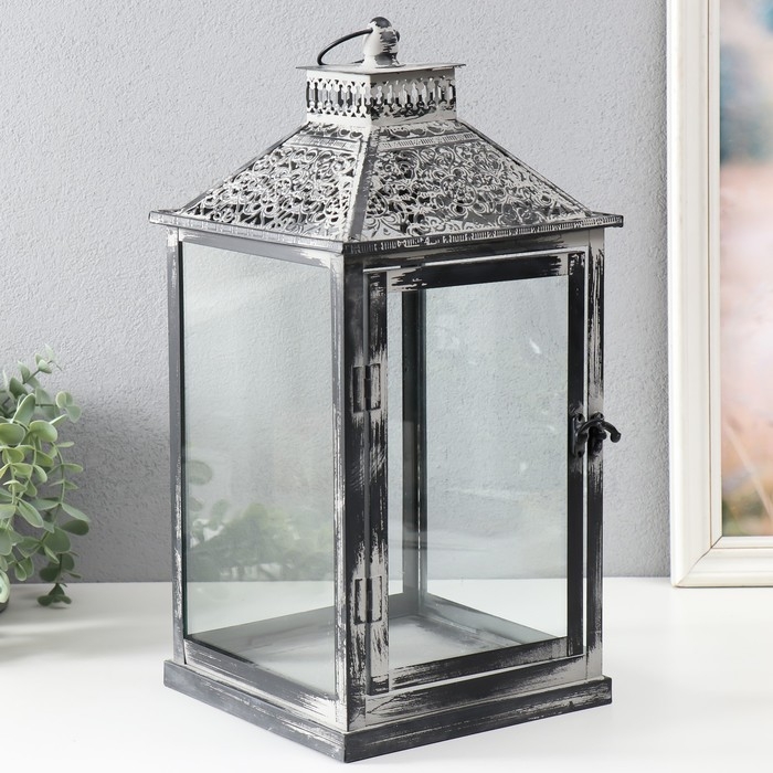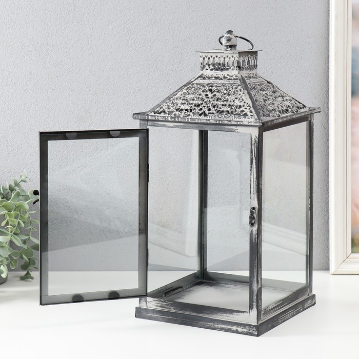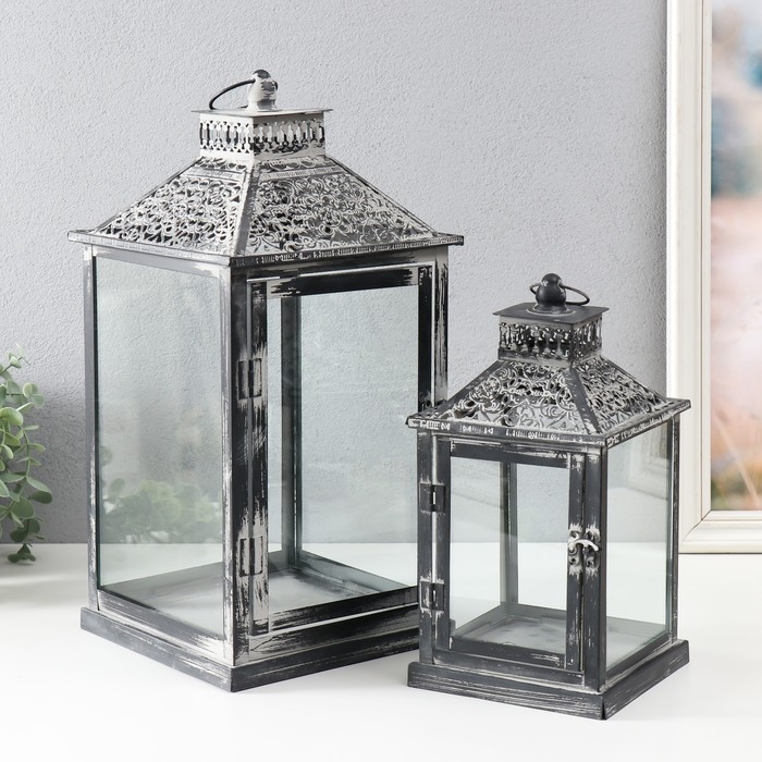 Подсвечник металл фонарь "Кружевные узоры" набор 2 шт 14х14х27 см, 20х20х40 см