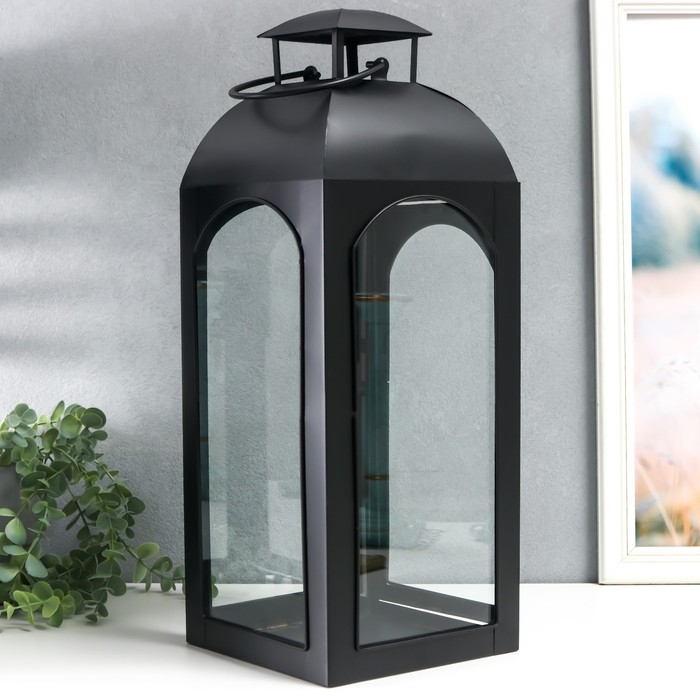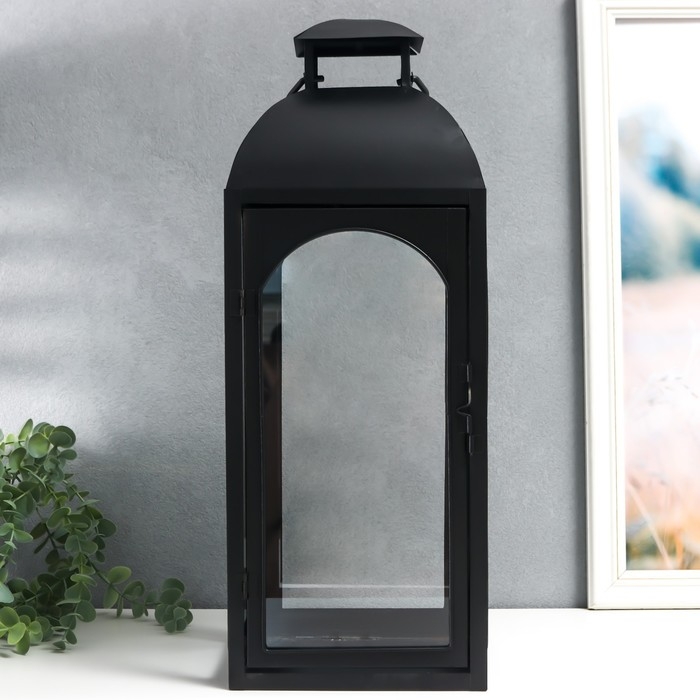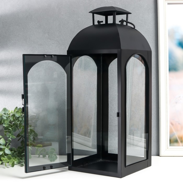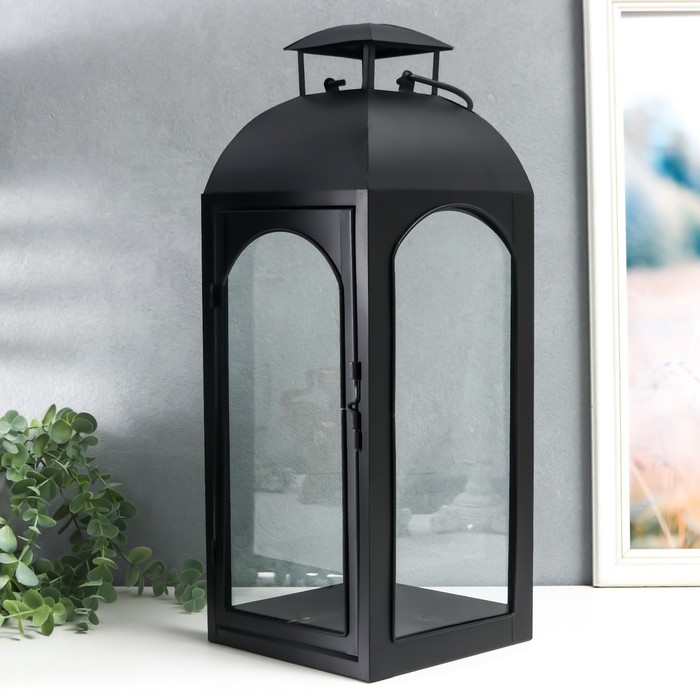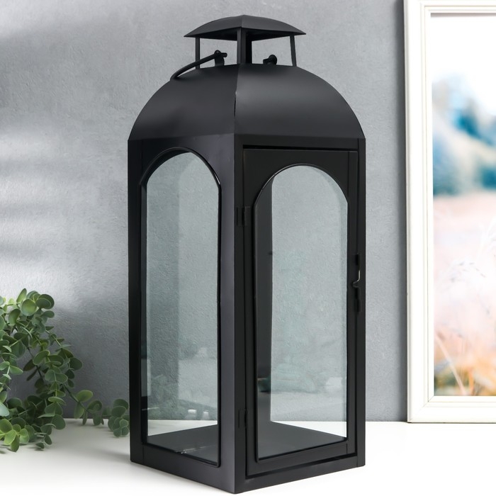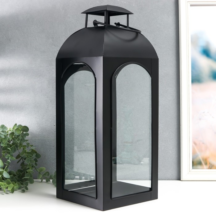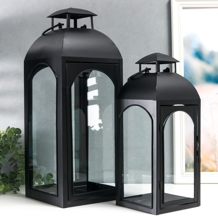 Подсвечник металл "Фонарь купольный" чёрный набор 2 шт 14,5х14,5х35 см 47х18х19 см