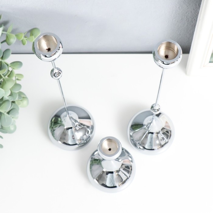 Подсвечник металл "Капля" набор 3 шт серебро 8,5х8,5х15;8,5х8,5х32 см