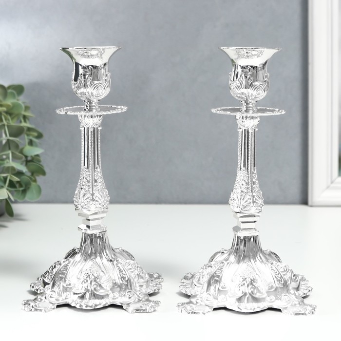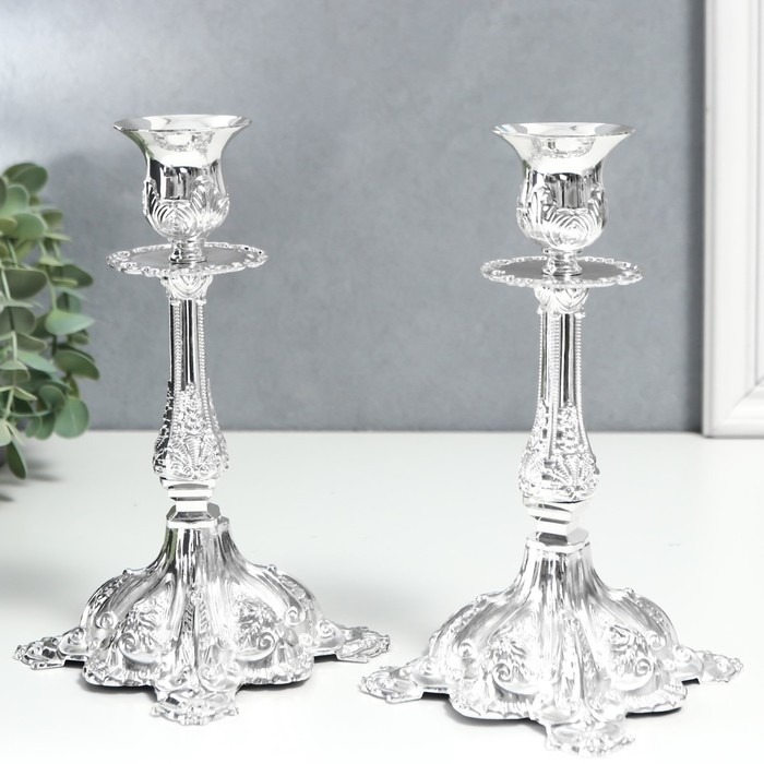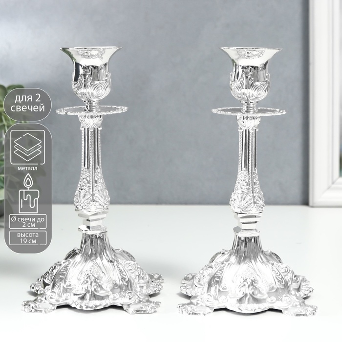 Подсвечник металл "Людвиг" набор 2 шт цвет серебро 19х10х10 см