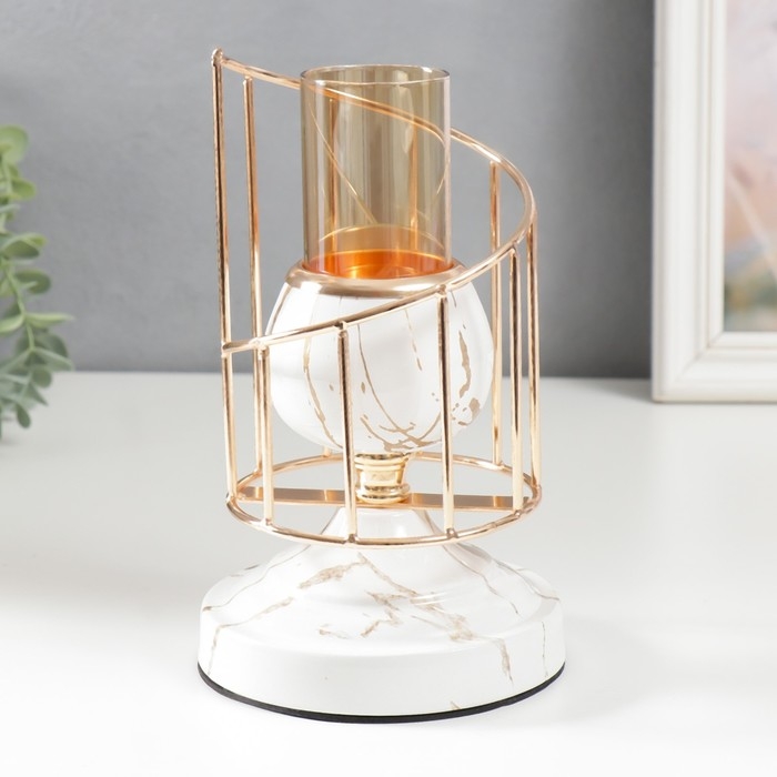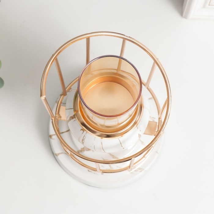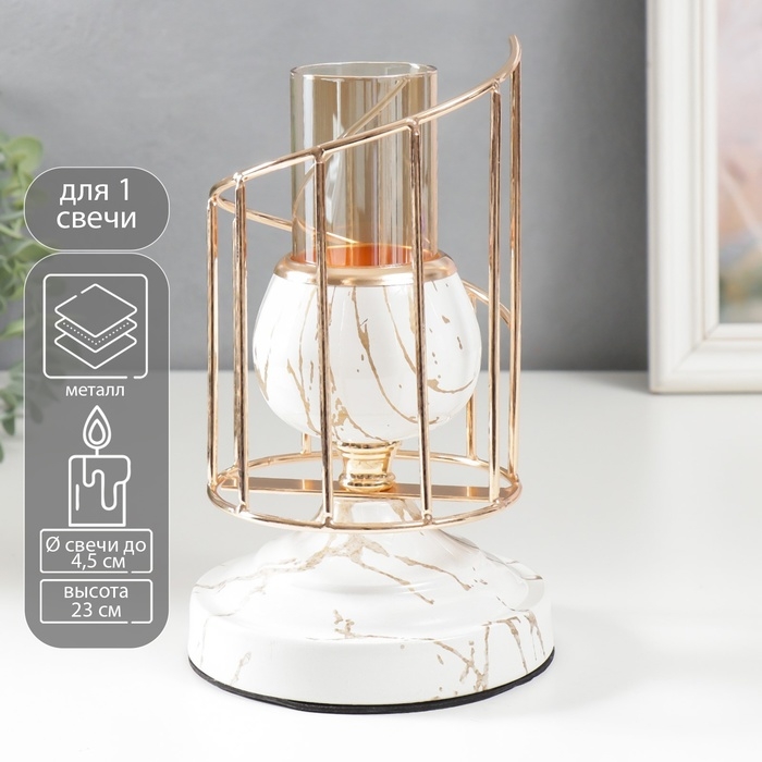 Подсвечник металл на 1 свечу "Белый мрамор с золотыми трещинками. Лестница" 23х13х13 см