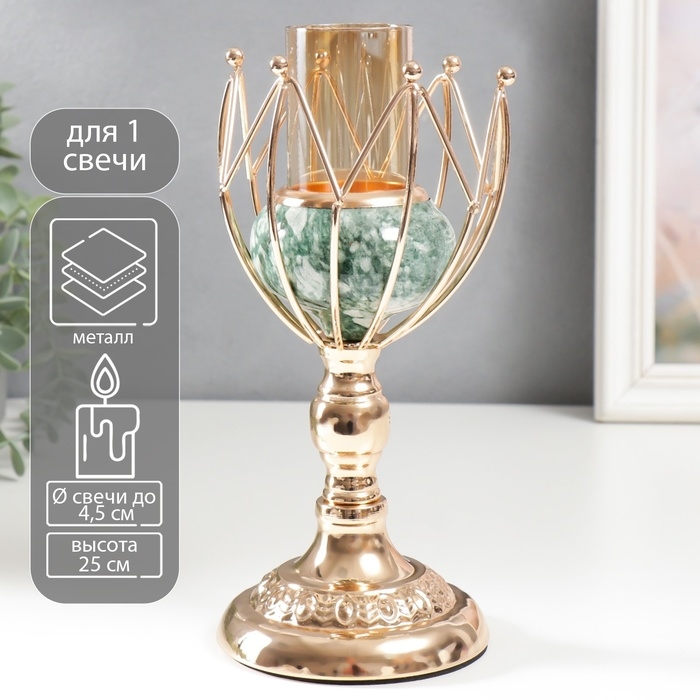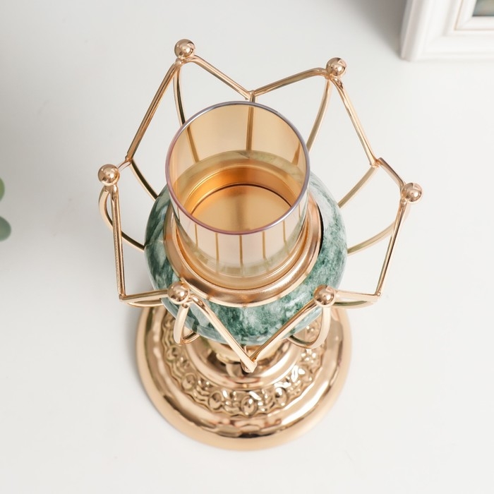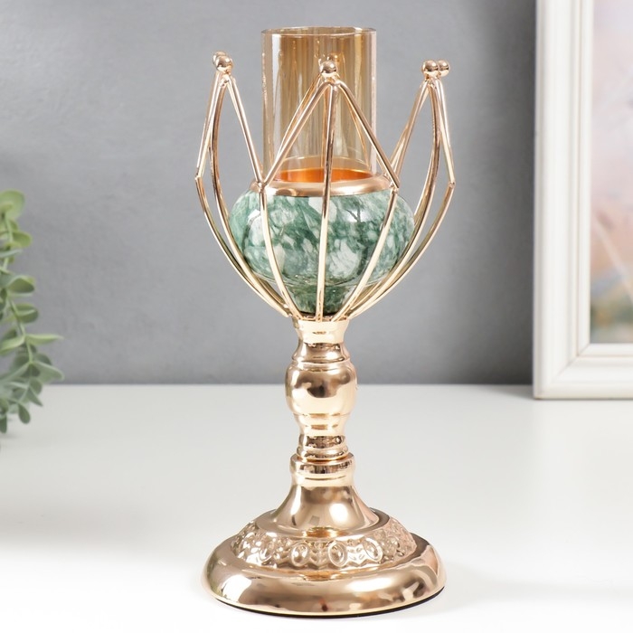 Подсвечник металл на 1 свечу "Бутон. Бело-зелёный мрамор" золото 25х11х11 см