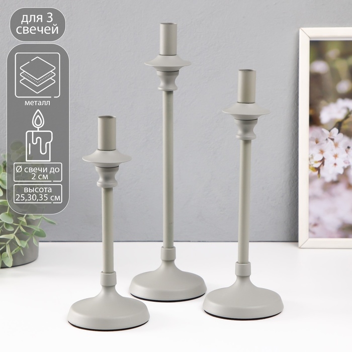 Подсвечник металл на 1 свечу d=2 см "Стиан" набор 3 шт 10,5х10,5х35 30 25 см