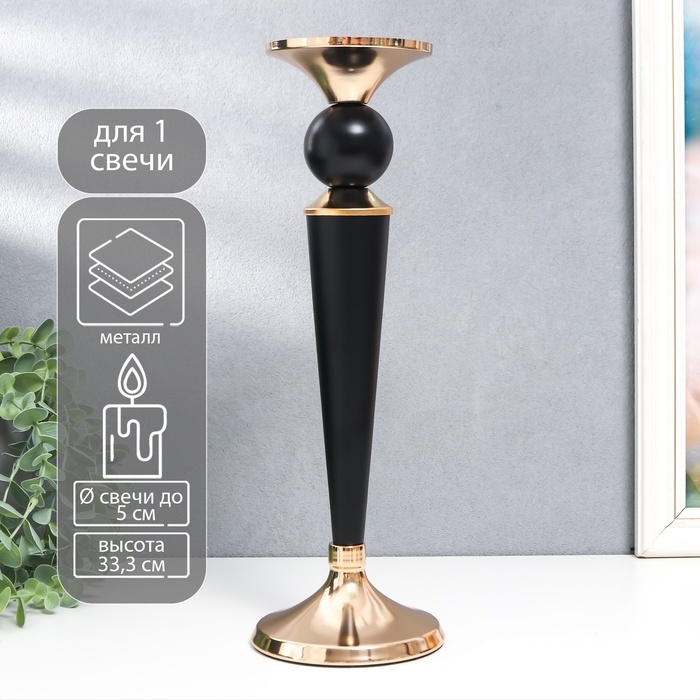 Подсвечник металл на 1 свечу "Давид" чёрный с золотом 33,3х11,5х11,5 см