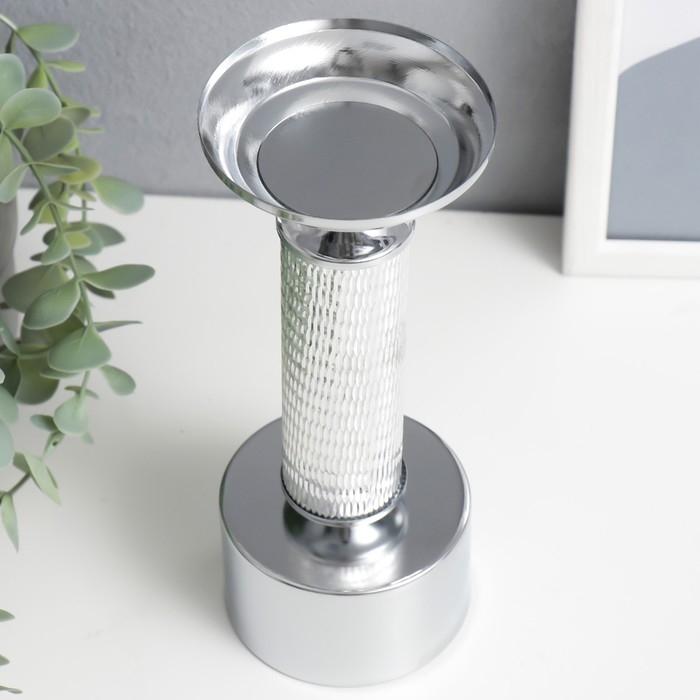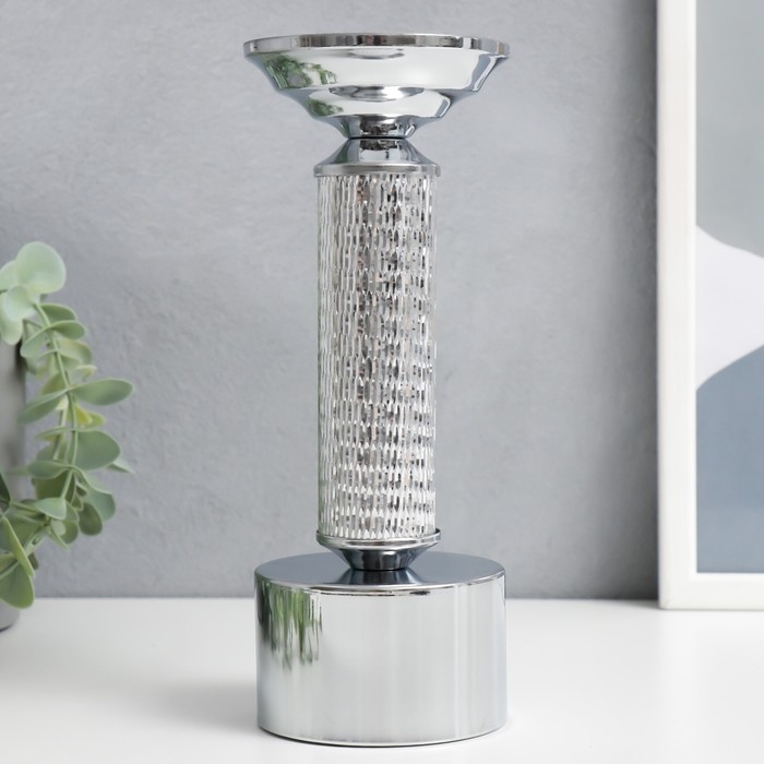 Подсвечник металл на 1 свечу "Иллюзия" серебро 21х8х8 см