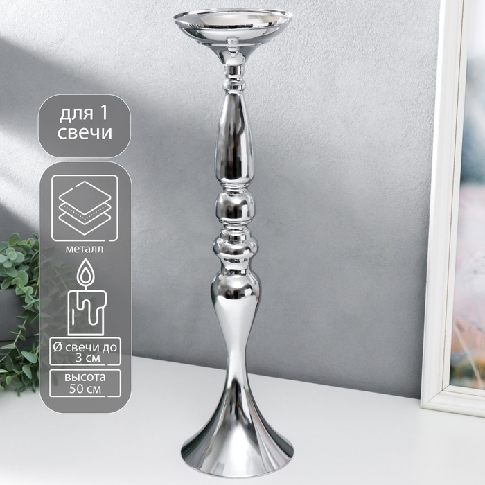Подсвечник металл на 1 свечу "Изящный" серебристый 50х13х13 см