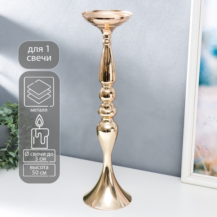 Подсвечник металл на 1 свечу "Изящный" золотой 50х13х13 см