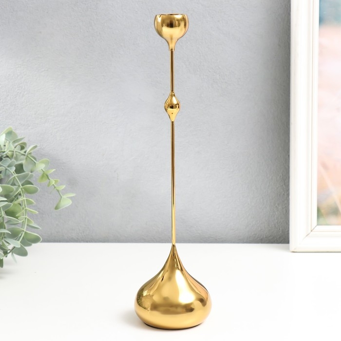 Подсвечник металл на 1 свечу "Капля воды - верх" золото 8,5х8,5х31 см