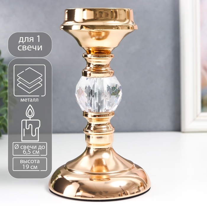Подсвечник металл на 1 свечу "Классика - прозрачный шар" золото 19х11х11 см