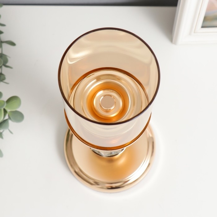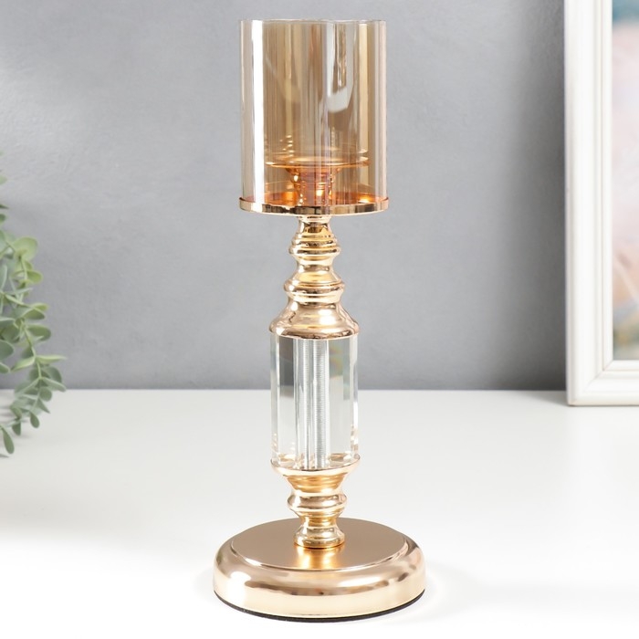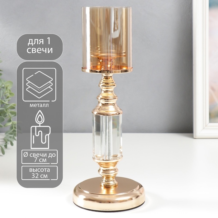 Подсвечник металл на 1 свечу "Колонна-кристалл" золото 32х12х12 см