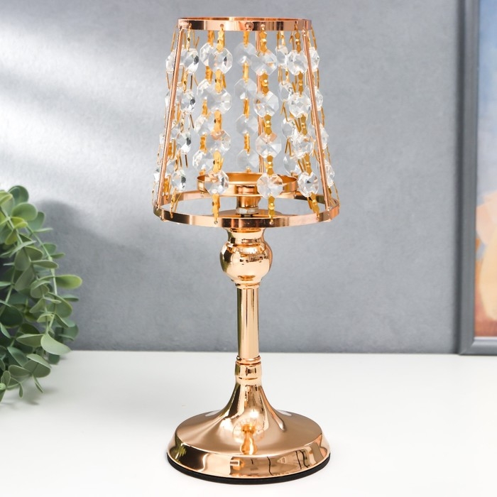 Подсвечник металл на 1 свечу "Кристаллы - Лампа" золото 26х13х13 см