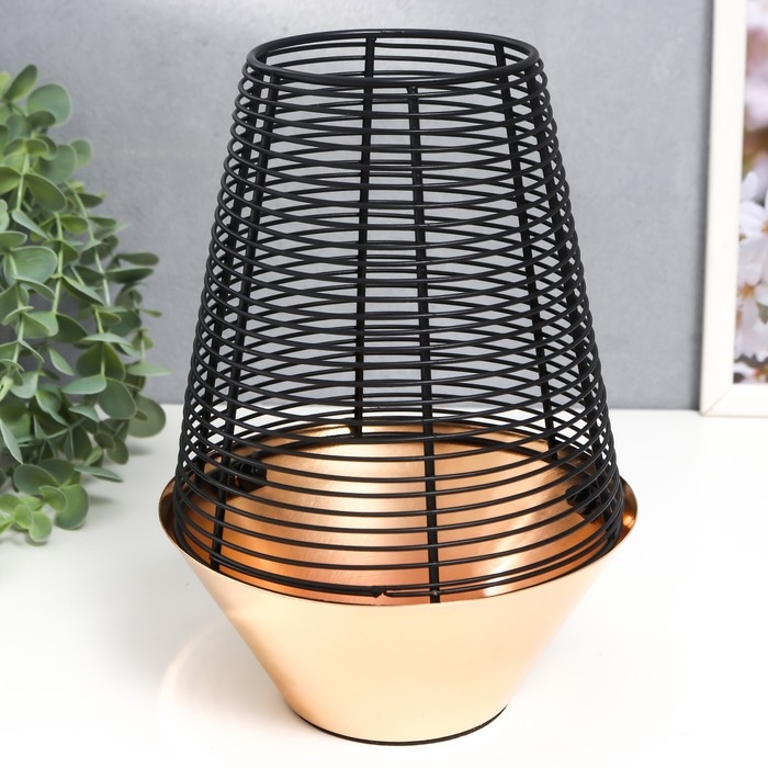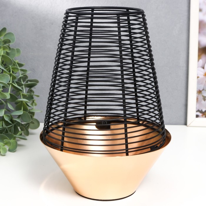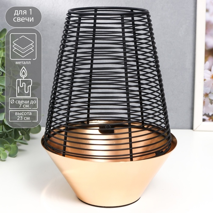 Подсвечник металл на 1 свечу "Лофт. Прутья" чёрный с золотом 23х16х16 см