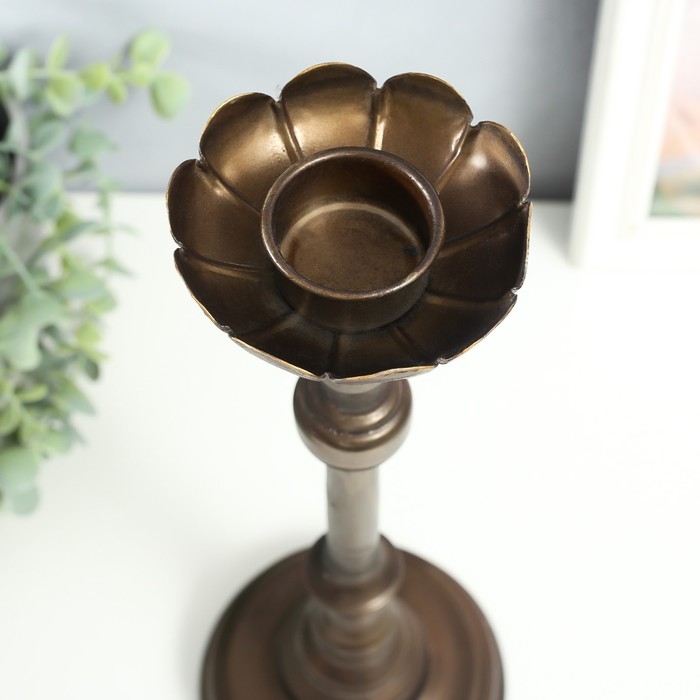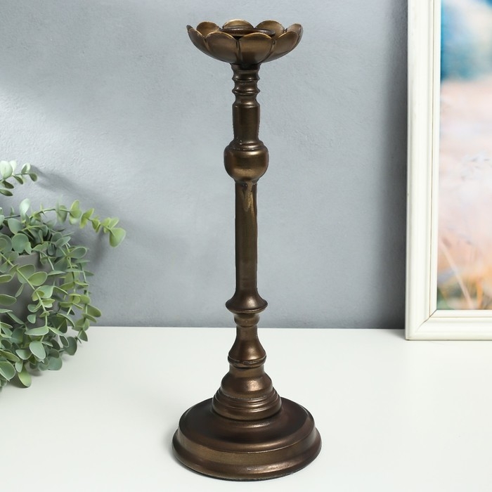 Подсвечник металл на 1 свечу "Моника" состаренная бронза 13,5х13,5х38 см