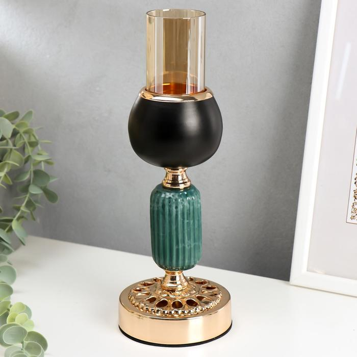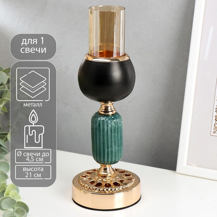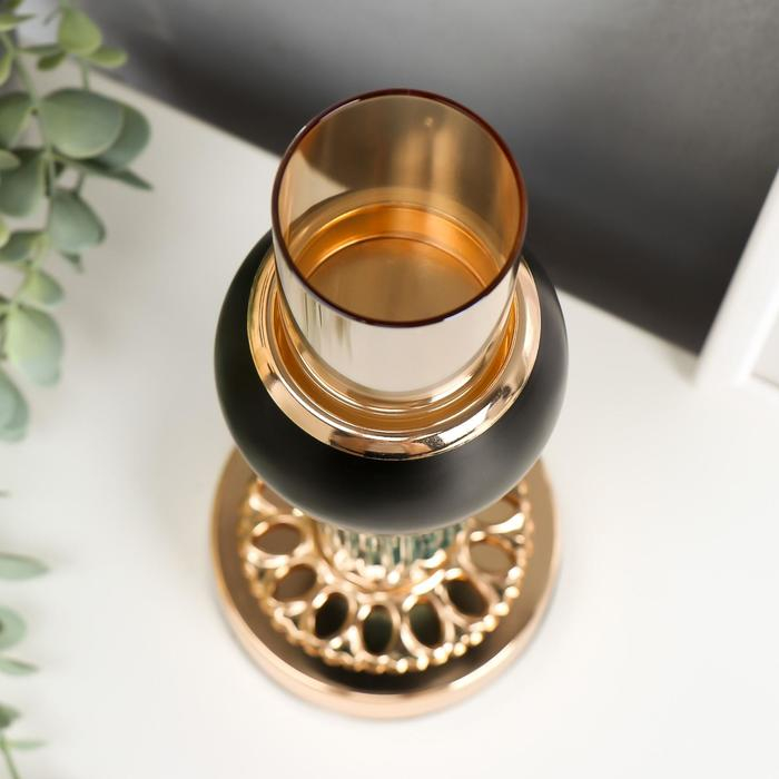 Подсвечник металл на 1 свечу "Мрамор" чёрный с золотом 21х9,5х9,5 см
