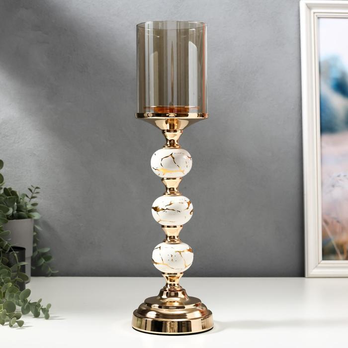 Подсвечник металл на 1 свечу "Мраморные шары с золотом" 41,5х11,5х11,5 см
