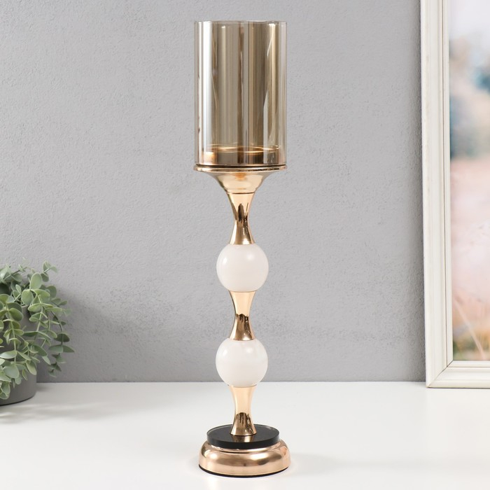 Подсвечник металл на 1 свечу "Мраморный шар" золото 49х10х10 см