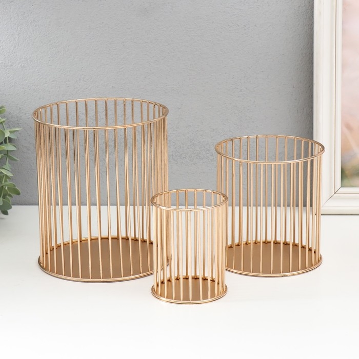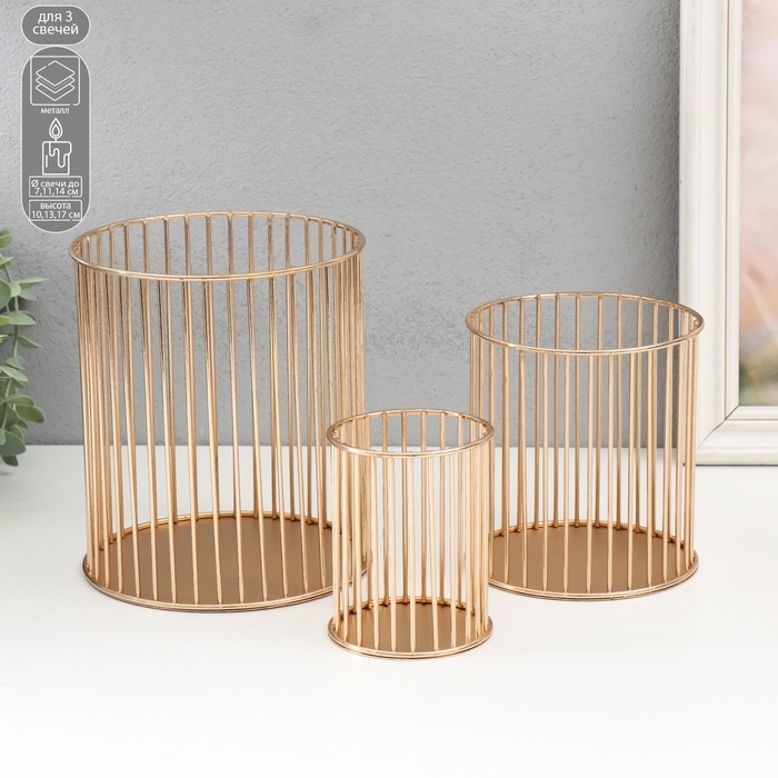 Подсвечник металл на 1 свечу "Нимбус" набор 3 шт золото 8х10, 12х13, 15х17 см