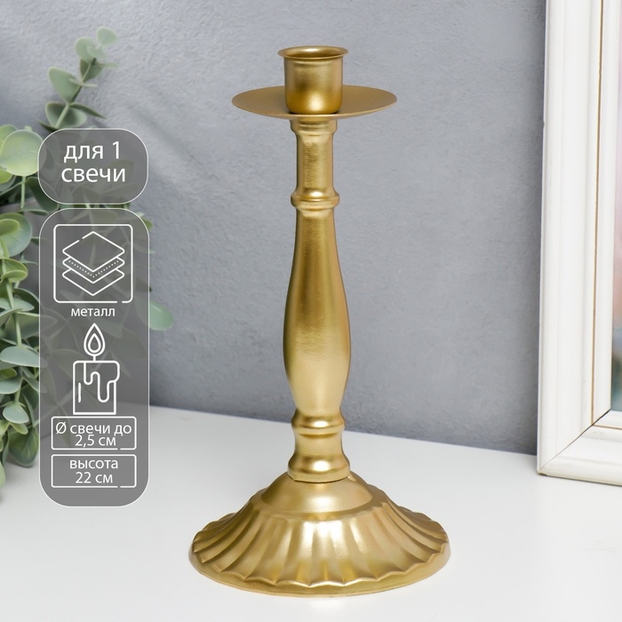 Подсвечник металл на 1 свечу "Прованс" золотой 22х11х11 см