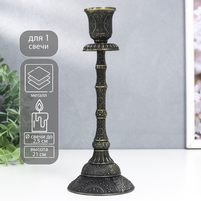 Подсвечник металл на 1 свечу "Раджа" бронза 21х8х8 см