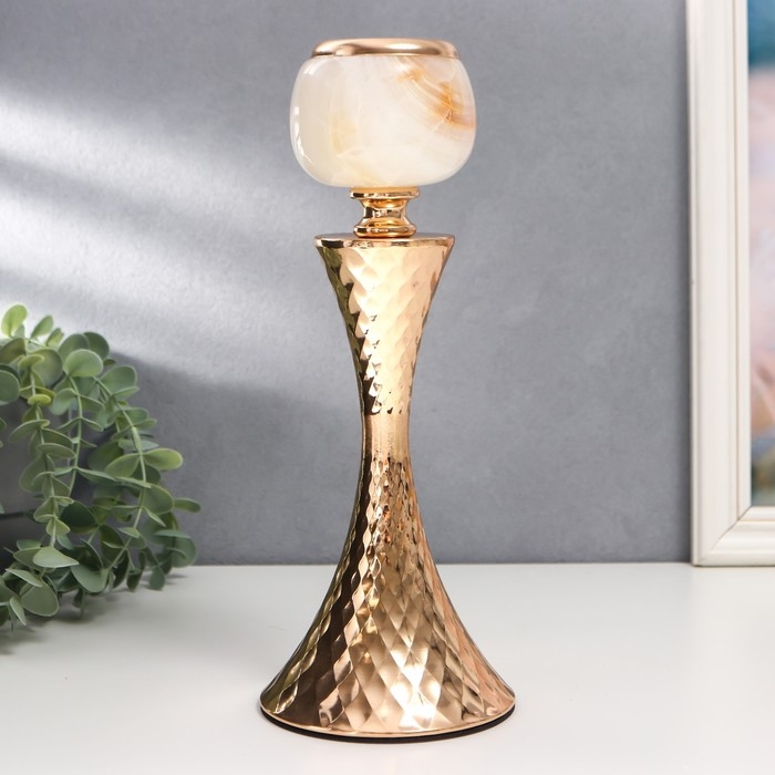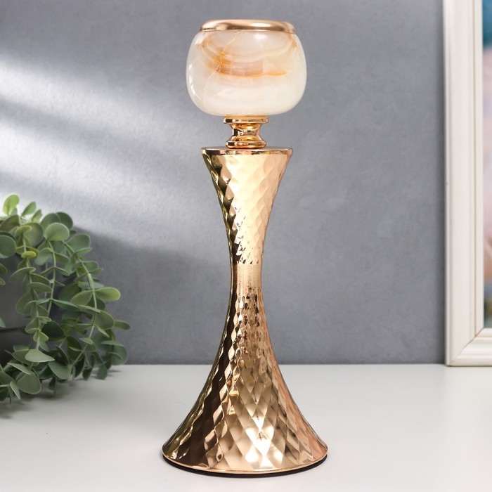 Подсвечник металл на 1 свечу "Рельефный геометрический узор" золото 28х11х11 см