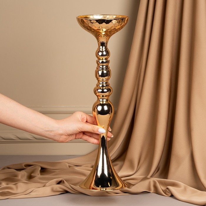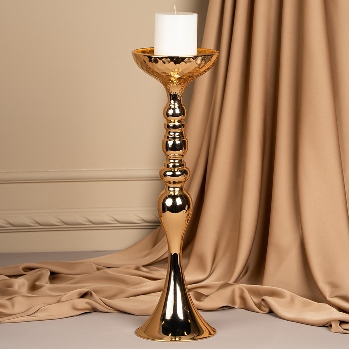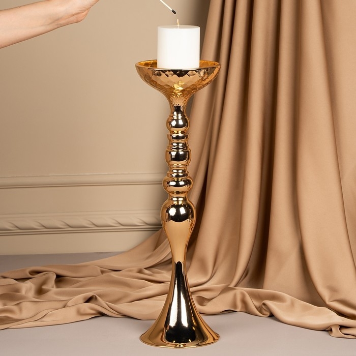 Подсвечник металл на 1 свечу «Ричард» цвет золото 12.5 х 12.5 х 44 см