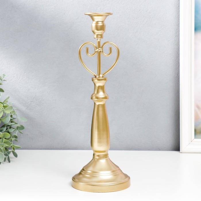 Подсвечник металл на 1 свечу "Сердце" золотой 34х11,5х11,5 см