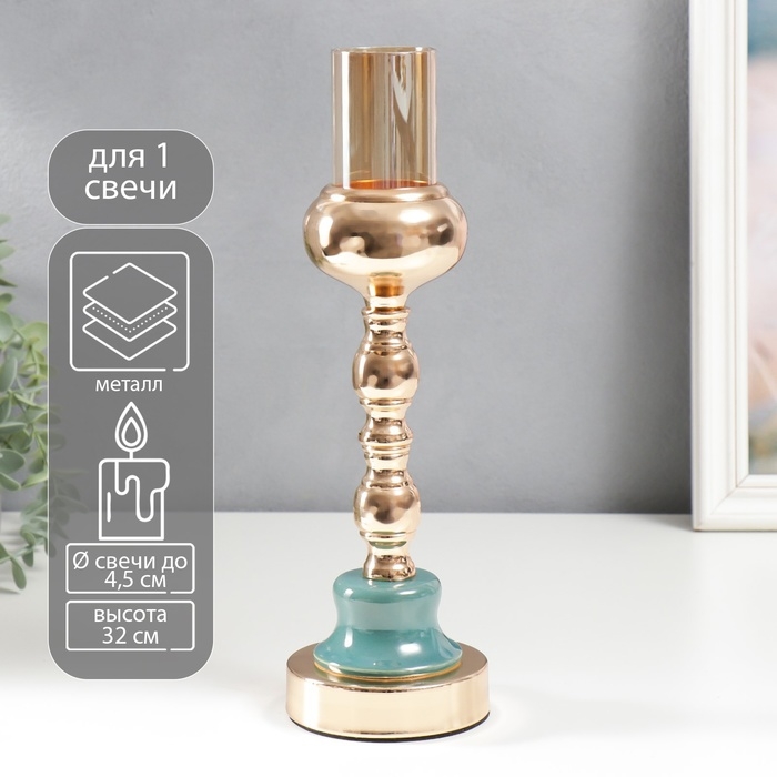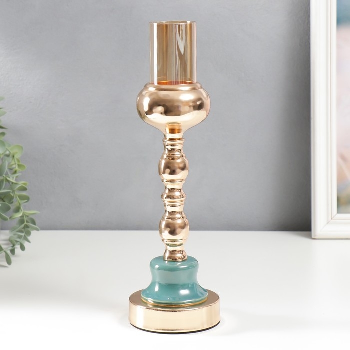 Подсвечник металл на 1 свечу "Стиляги" золото и сине-зелёный 32х10х10 см