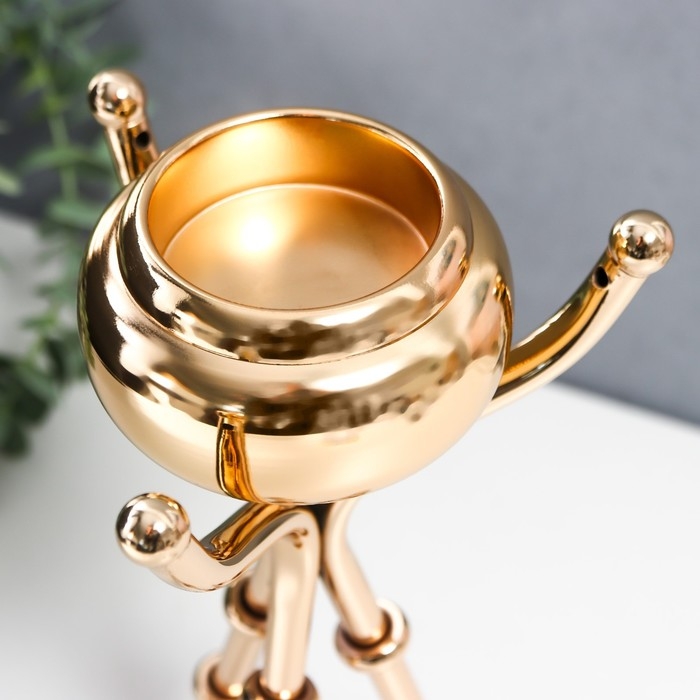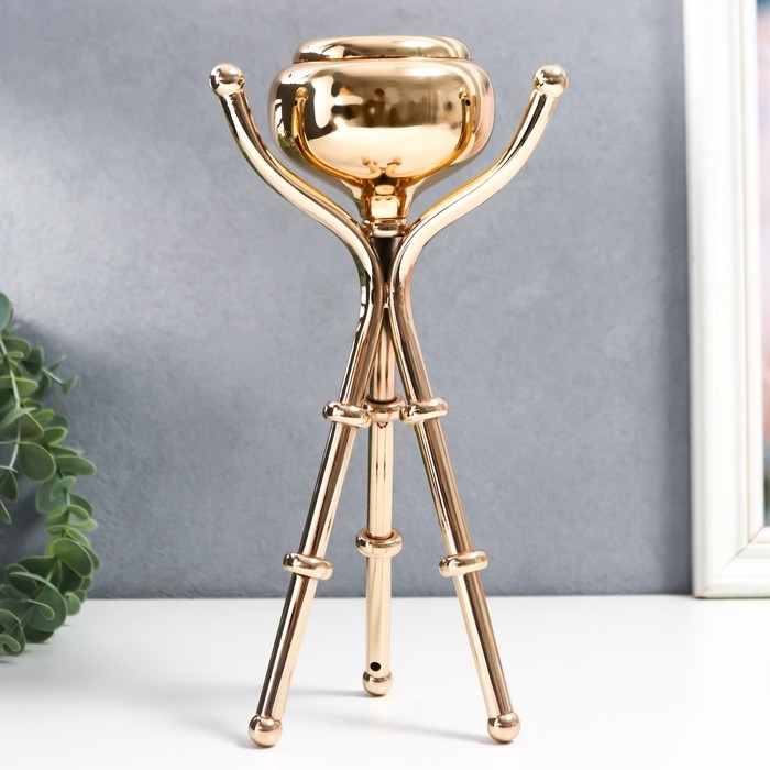 Подсвечник металл на 1 свечу "Тренога с куполом" золото 24х13х13 см